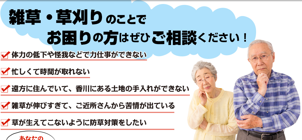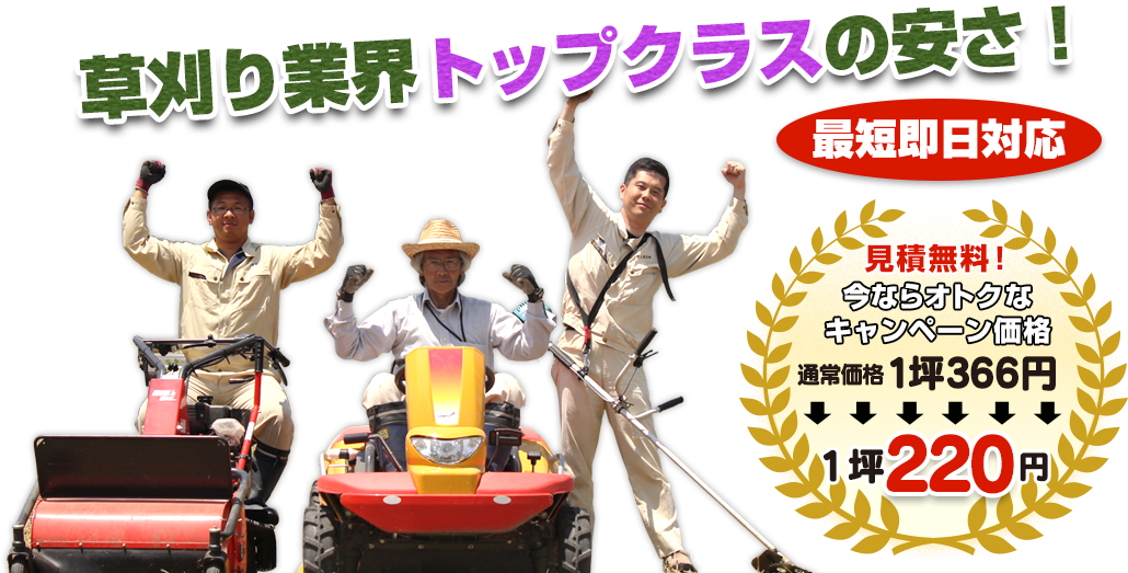 ※現地確認の際、樹が生えている、畝が立っているなど、草刈作業に支障がある場合は、別途費用が必要になる場合がありますので、ご了承ください。